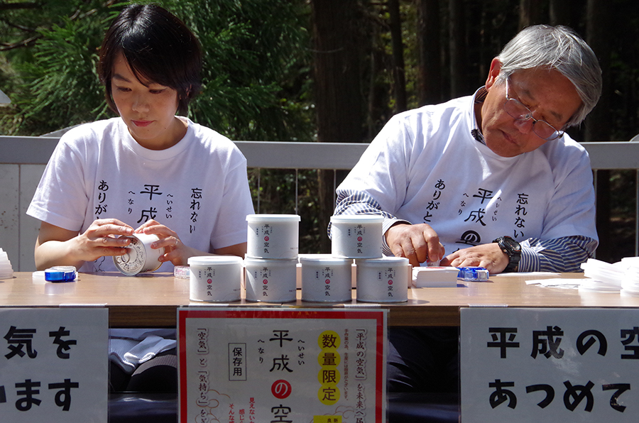 でも、何処の空気を採取する事が今回の企画に相応しいのかなかなか答えを出せずにいました。そんなある日の夜、テレビで「平成」の改元に伴い、岐阜県にある「平成村」にたくさんの人々が押し寄せ、大きな話題となったニュースを目にしました。